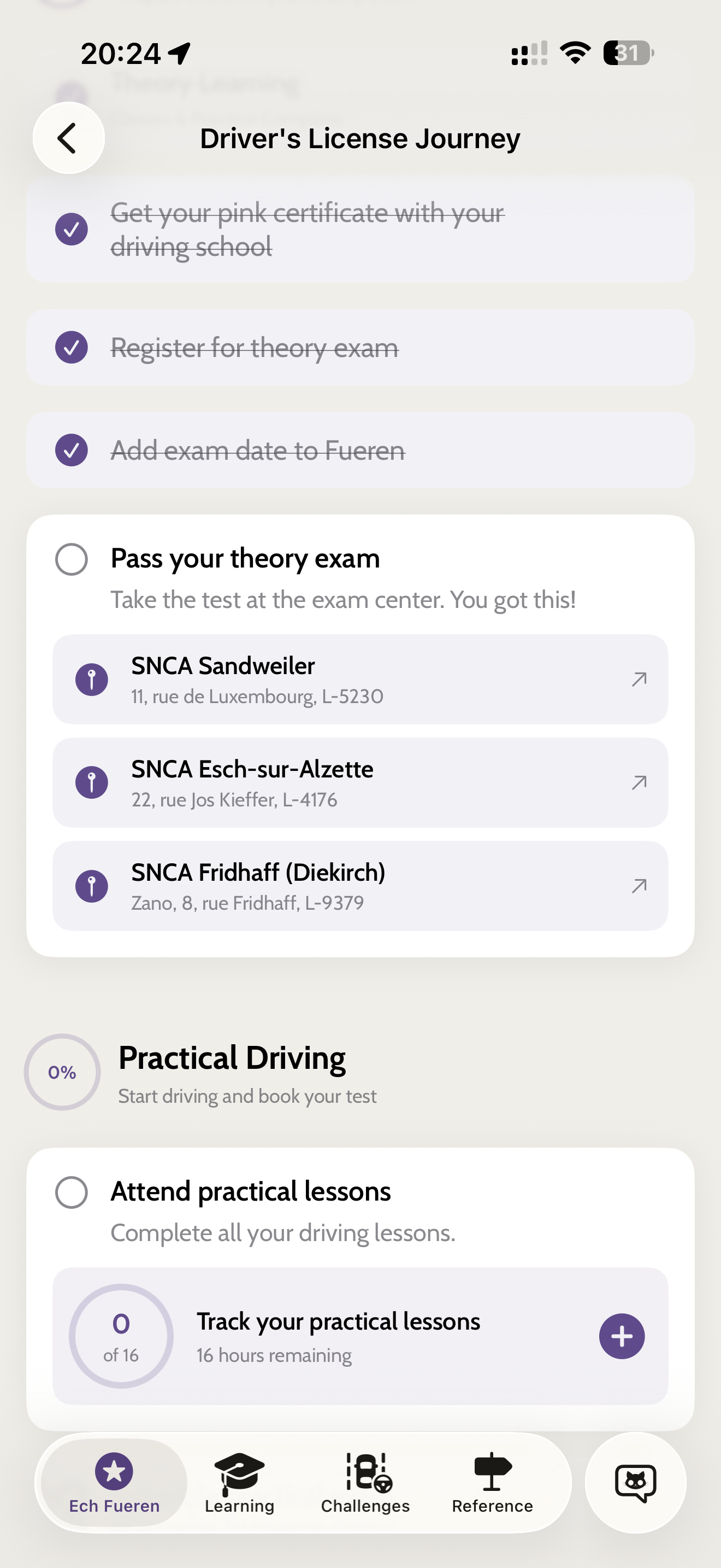 Luxembourg's diverse population presents unique challenges for driving education. Fueren addresses this with full multilingual support and a deep understanding of local priority rules. During its private beta phase, creator Márcio Souza used the prototype to study for his own official SNCA theory exam, passing with a 99% score and finishing in just seven minutes.